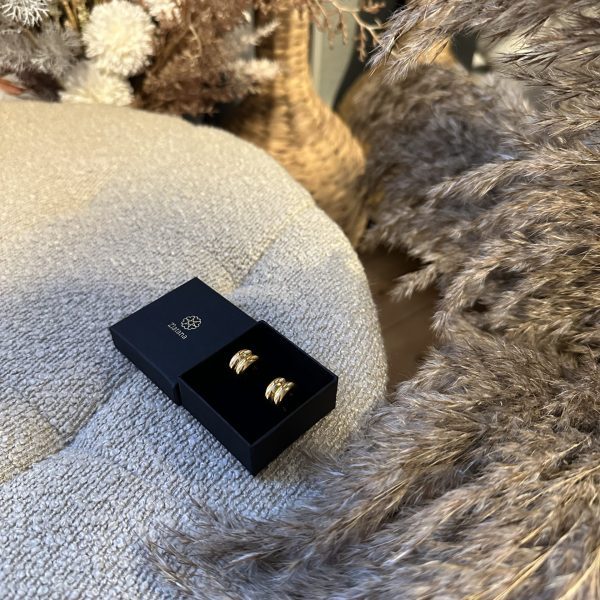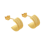 Smukke øreringe med et stilfuldt bølget design, fremstillet i 18K guldbelagt rustfrit stål. De er slidstærke, vand- og svedfaste, hypoallergene og modstandsdygtige over for ridser, rust og misfarvning. Perfekte til enhver lejlighed.