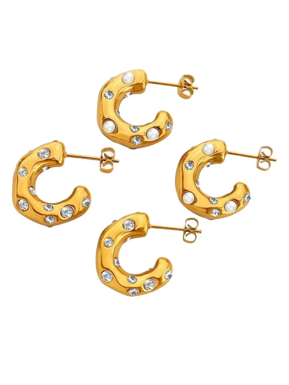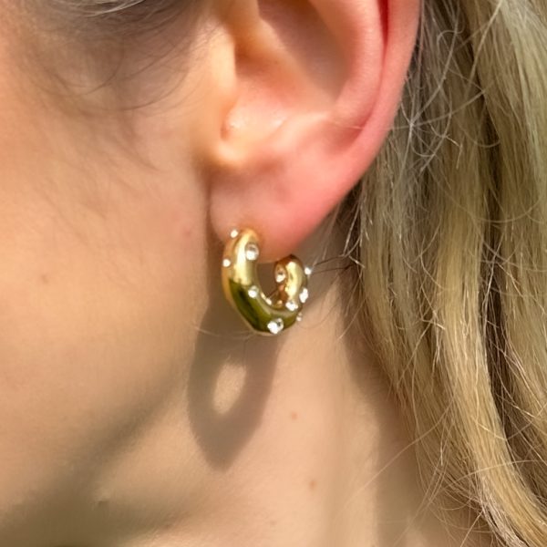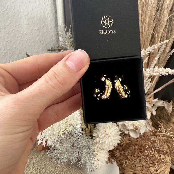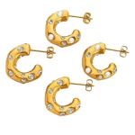 Oplev tiltrækningen ved Himmelske Bue Ringe, et fortryllende par C-formede øreringe fremstillet af poleret guldtonet metal. Disse iøjnefaldende ringe er udsmykket med store, strålende zirkonsten, der glimter som fjerne stjerner og fanger lyset ved hver bevægelse. Den åbne C-form tilbyder en moderne elegance, mens den sikre pindlås garanterer komfort hele dagen. Ideelle til at løfte hverdagslooks eller tilføje et strejf af glamour til aftenoutfits, disse øreringe forener dristig raffinement med himmelsk inspireret skønhed.