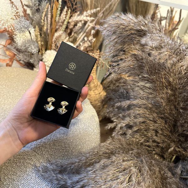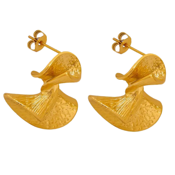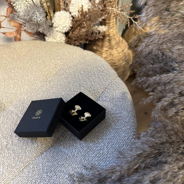 Disse elegant formede, guldbelagte øreringe er inspireret af naturens blide kurver og tilføjer ethvert outfit et strejf af moderne kunsthåndværk og tidløs elegance.