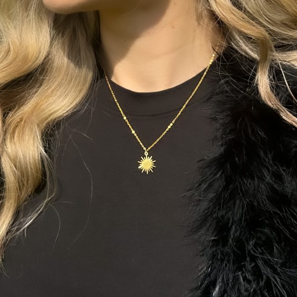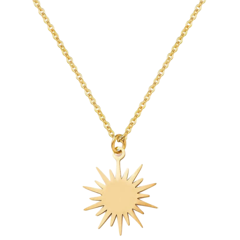 Tilføj et strejf af solskin til dit look. Det delikate vedhæng formet som en gylden sol, komplementerer både hverdags- og festoutfits og giver et varmt, strålende finish.