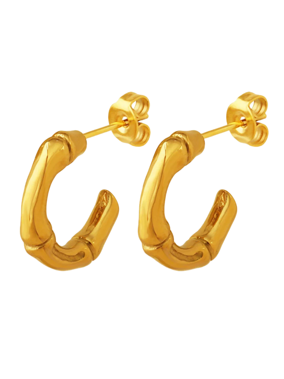 Elegant 18K Zana Gyldne Bambus Øreringe – Vandfast og Slidstærkt